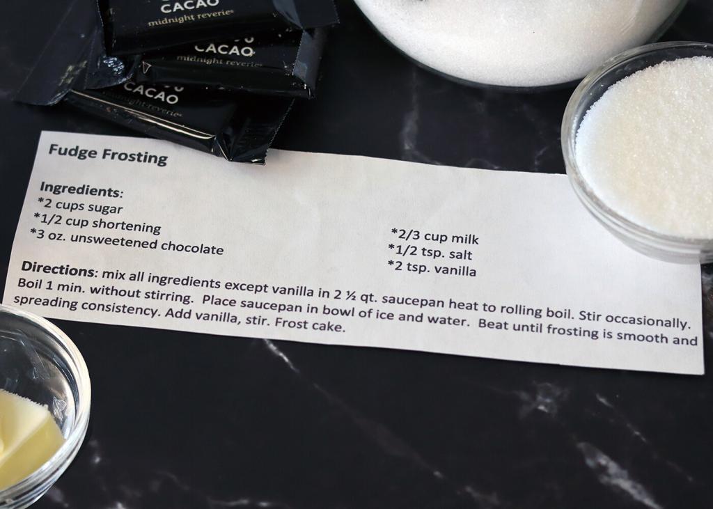 While the recipe was not written to include specific frosting ingredients and instructions, it does call for frosting the brownies once they are cool and I do not ever remember my grandmother or my mother serving these brownies naked (that would just be scandalous 😉). Which makes sense, my mother absolutely loved frosting, I’m pretty sure that she considered cakes and brownies to essentially be vehicles for frosting 🙂.