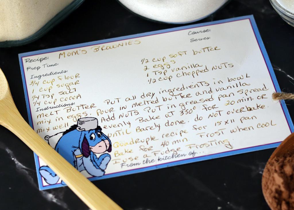 Thinking back, most of my memories about this recipe center around my high school years. That is the first time I remember my mother asking me to make them for her (she was also a brownie lover). I remember the copy of the recipe I used at the time was actually titled “Texas Brownies”, rather than “Mom’s Brownies”, as depicted above, but it was the same recipe. I also remember that neither grandma nor mom ever made a single batch of this recipe, always a quadruple batch in a 15″ x 11″ inch pan, so when mom asked me to make brownies, that is what she expected me to do too, and who am I to argue with more brownies?